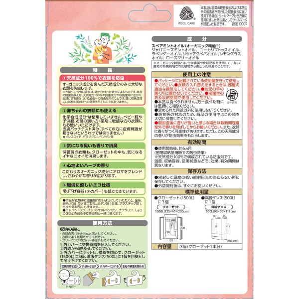 나튜보 (natuvo) 의류용 방충 케어 나튜보 옷장용 방충제 3개 아스제약 > 천연계 제제