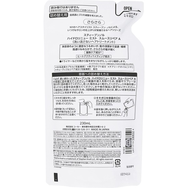 스티브 노우야드 하이드로 리뉴 미스트 스무스 리페어 A (리필용) 230ml 코세 > 스티븐 놀