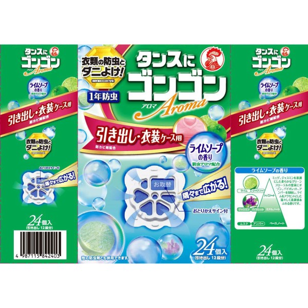 곤곤 아로마 의류 방충제 서랍·의상 케이스용 라임 소프 향 (1년 방충·방곰팡이·진드기 방지) 24개 다이니혼죠추기쿠 > 향기 1년용