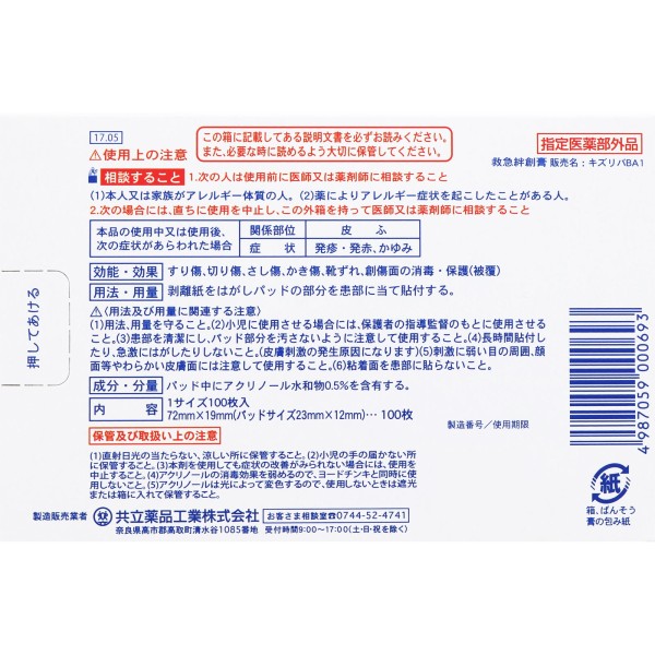 B·B 테이프 A(N) 100매 교리츠 약품공업 > 구급 밴드(스탠더드 타입)