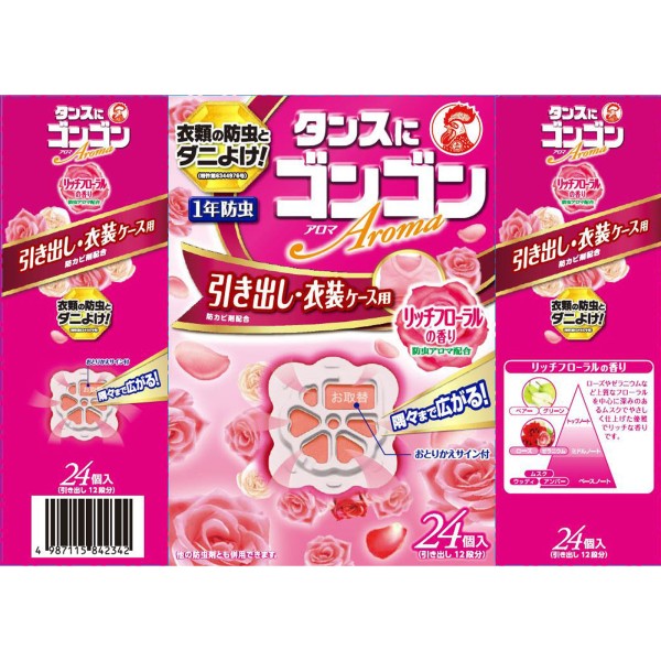 곤곤 아로마 의류 방충제 서랍·의상 케이스용 리치 플로럴 향 (1년 방충·방곰팡이·진드기 방지) 24개 다이니혼죠추기쿠