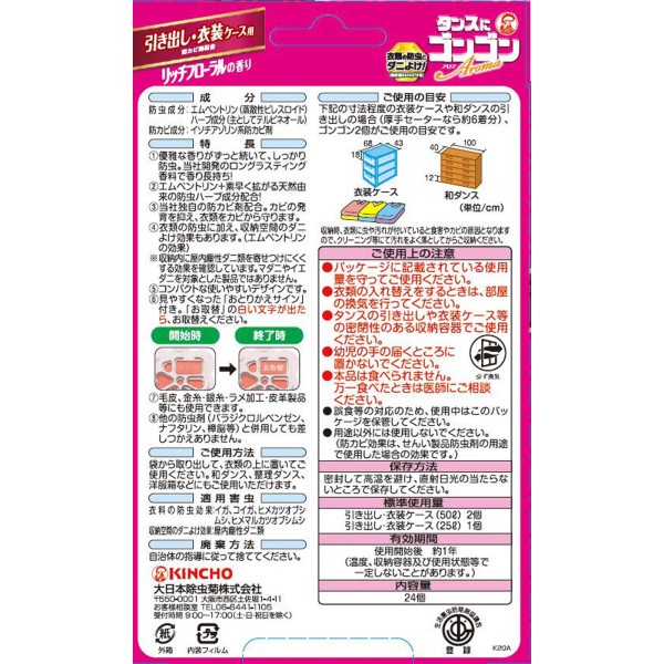 곤곤 아로마 의류 방충제 서랍·의상 케이스용 리치 플로럴 향 (1년 방충·방곰팡이·진드기 방지) 24개 다이니혼죠추기쿠 > 향기 1년용