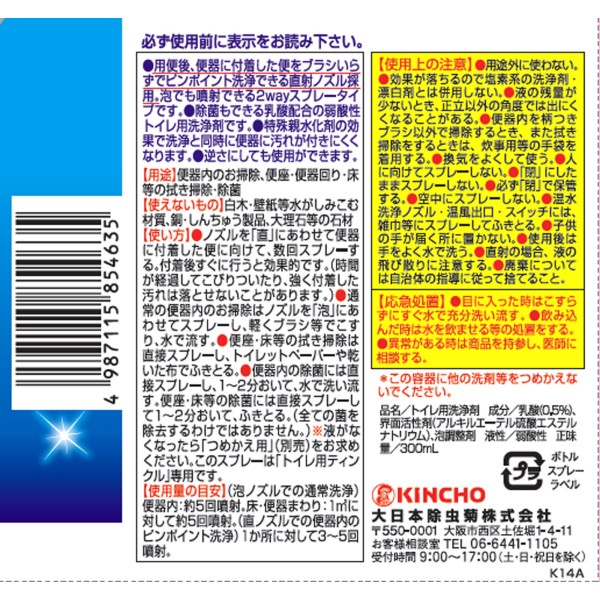 화장실용 팅클 화장실 세제 직사·거품 2way 스프레이 본체 300ml 다이니혼죠추기쿠 > 안심(중성) 타입