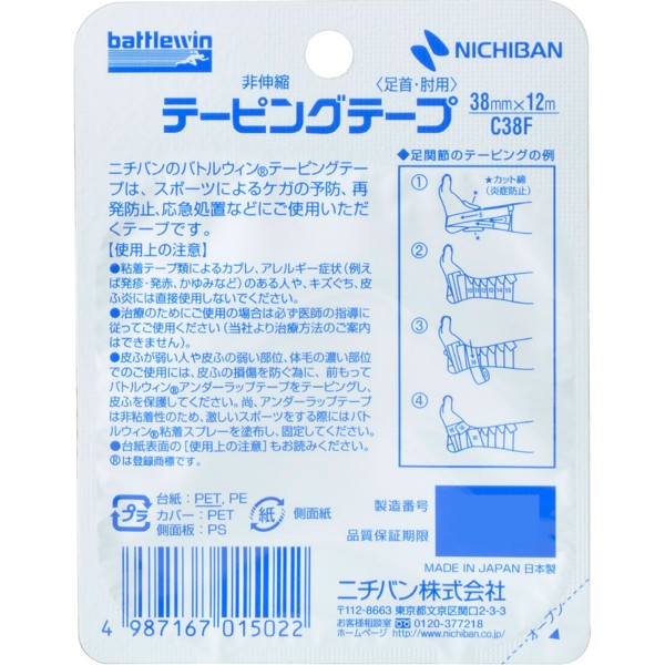 배틀윈 테이핑테이프 비신축타입 38mm폭 C-38F 니치반 > 테이핑 테이프 고정