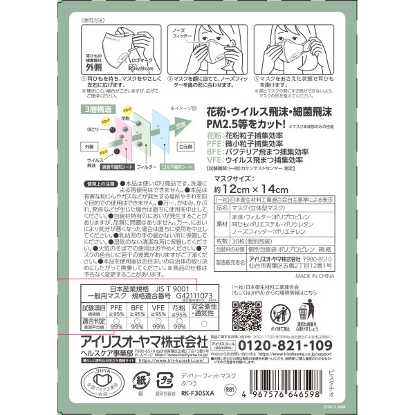 DAIRYFITMASK 입체 보통 피스타치오 30매 아이리스오야마