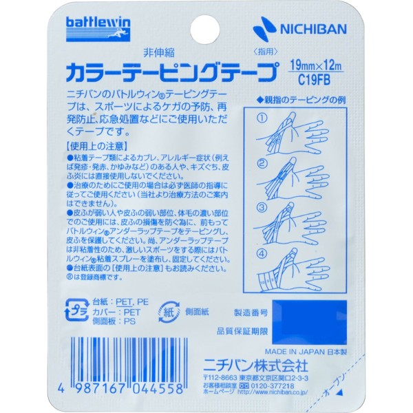 배틀윈 컬러테이핑테이프 비신축타입 베이지 19mm×19M 니치반 > 테이핑 테이프 고정