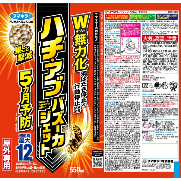 벌·등에벌 버즈카제트 550ml 후마키라 > 벌용