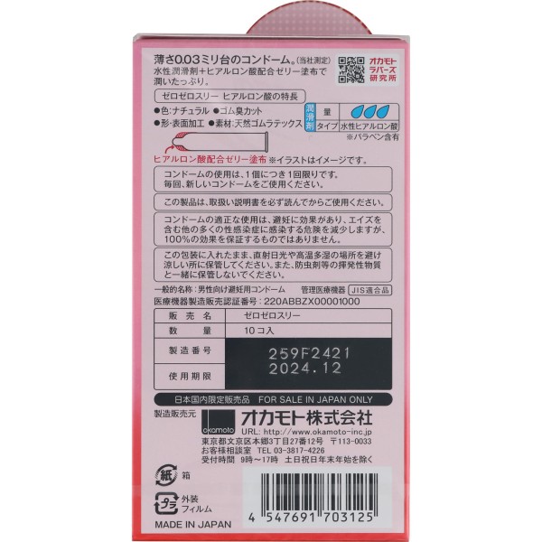 003 히알루론산 내추럴 10개 오카모토 > 1개 팩