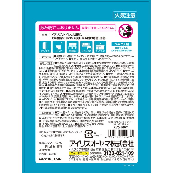 항균항바이러스스프레이 리필 180ml 아이리스오야마 > 기타