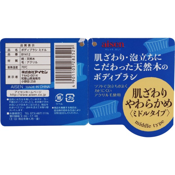 바디브러시 미들 BY412 아이센공업 > 보디 브러시