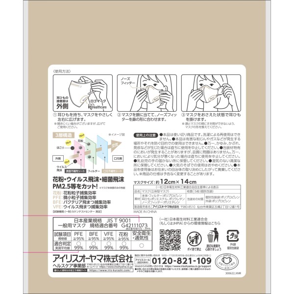 DAIRYFITMASK 입체 보통 페일베이지 5매 아이리스오야마 > 입체 타입