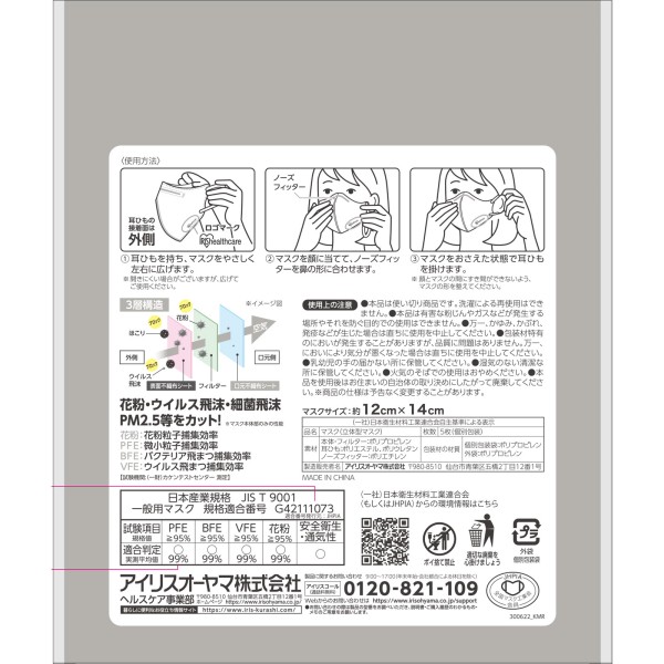 DAIRYFITMASK 입체 보통 뉘앙스그레이 5매 아이리스오야마 > 입체 타입