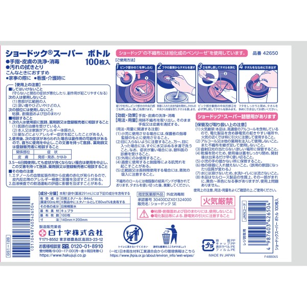 쇼독 슈퍼 보틀 100매 백십자 > 제균