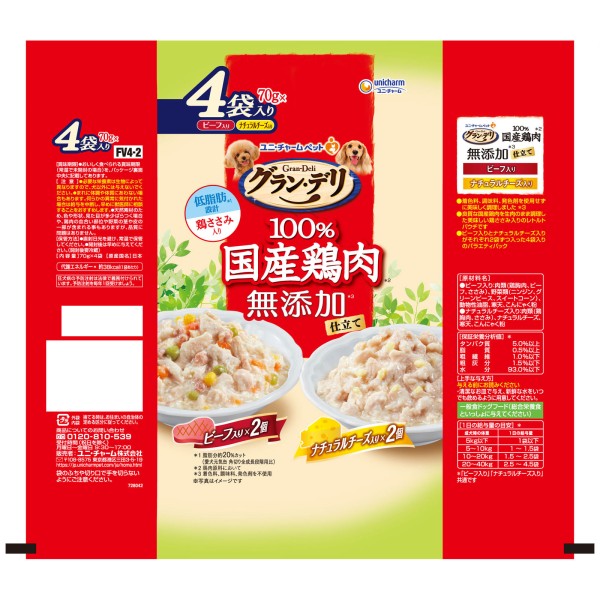 그랑데리 무첨가 일본산 파우치 성견용 소고기×내추럴치즈 70g×4P 유니참펫케어 > 레토르트 (성견용)