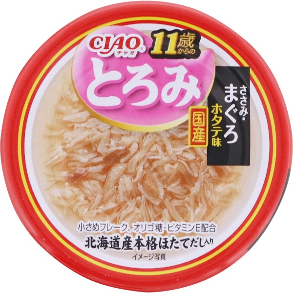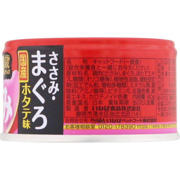 CIAO 점도 11세부터 닭고기살·참치 가리비맛 80g 이나바식품 > 하프 캔 (시니어 고양이용)