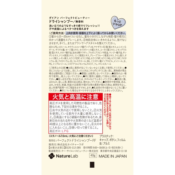 다이안 퍼펙트뷰티 드라이샴푸 무향 40g 네이처랩 > 기타 드라이 샴푸