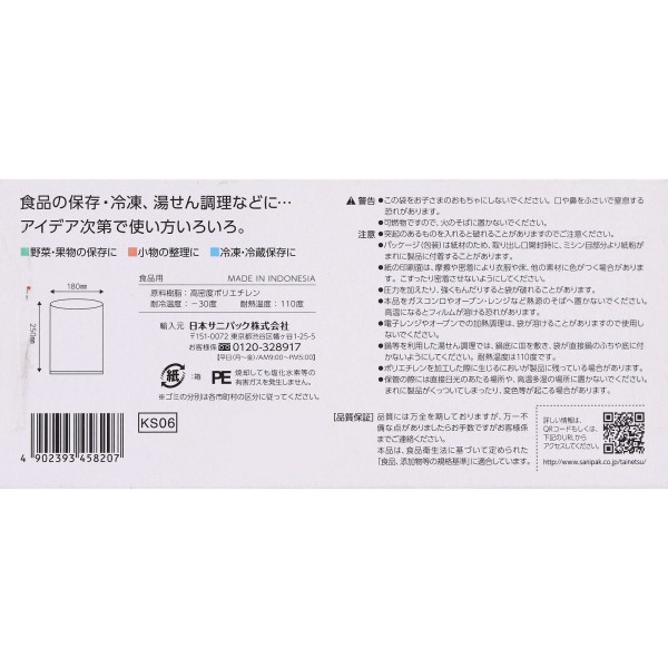 스마트키친 보존백 박스입 S 50매 일본사니팩 > 보존용 폴리백 지퍼식 봉투
