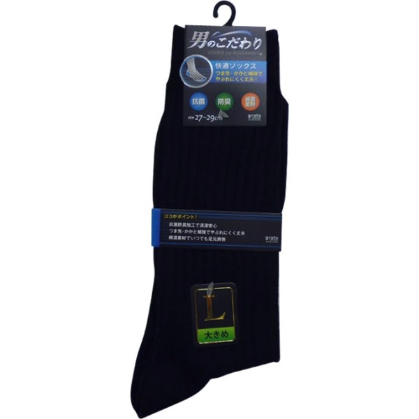 신사 양말 남자의 고집 리브 검정 L 27-29cm 그라토 > 비즈니스 삭스