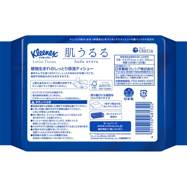 클리넥스 티슈 로션 피부촉촉 소프트팩 120조 일본제지크레시아 > 보습