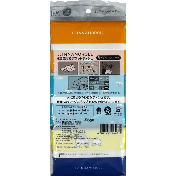 아이시나모롤 물에 흘러가는 포켓 티슈 8조×9P 카와노제지 > 캐릭터 (여아용)