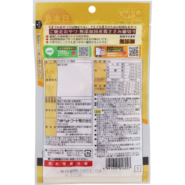 진수 간식 무첨가 일본산 닭고기살 가는 자르기 50g 규슈펫푸드 > 저키·축육 (유견·성견용)
