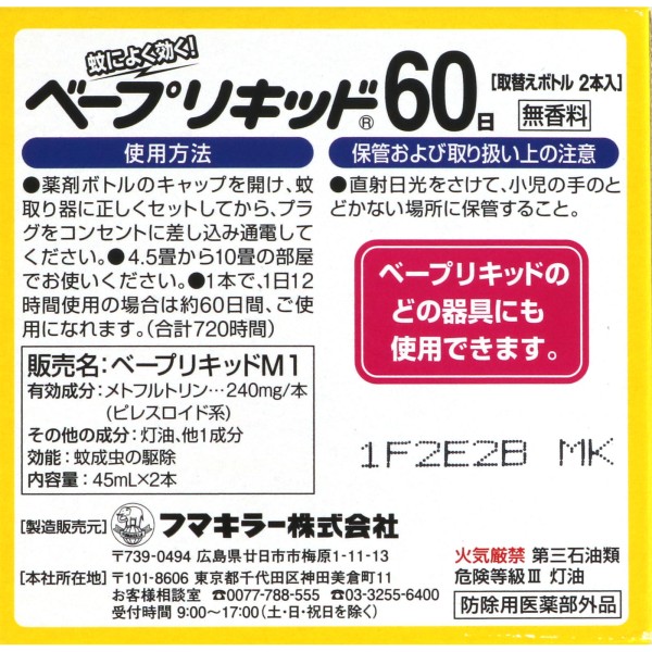 MK 베이프리퀴드 60일 무향 교체 보틀×2개 세트 후마키라 > 액체 모기 퇴치 세트·교체품