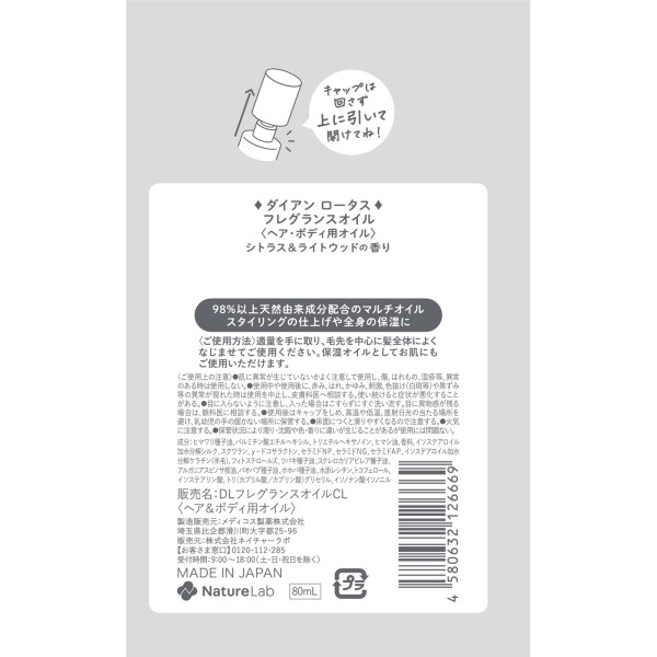 다이안 로터스 프래그런스 오일 시트러스&라이트우드향 80ml 네이처랩 > 다이안