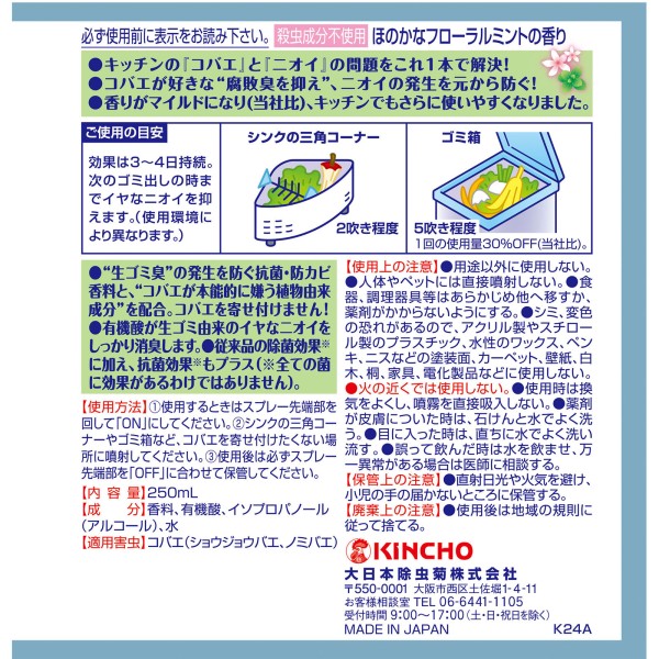 코바에코나즈 주방용 스프레이 부패억제 플로럴민트향 250ml 대일본제충국 > 스프레이
