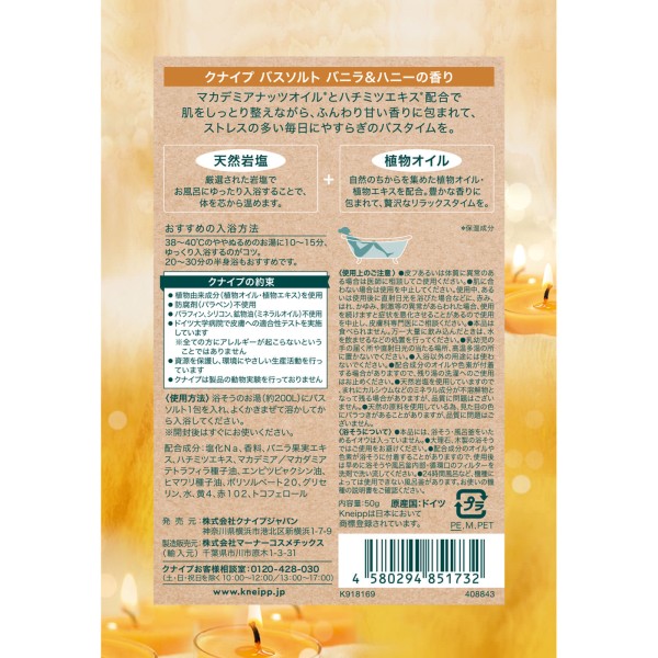 크나이프 배스솔트 바닐라&허니향 50g 크나이프재팬 > 개별 포장 분포 일반