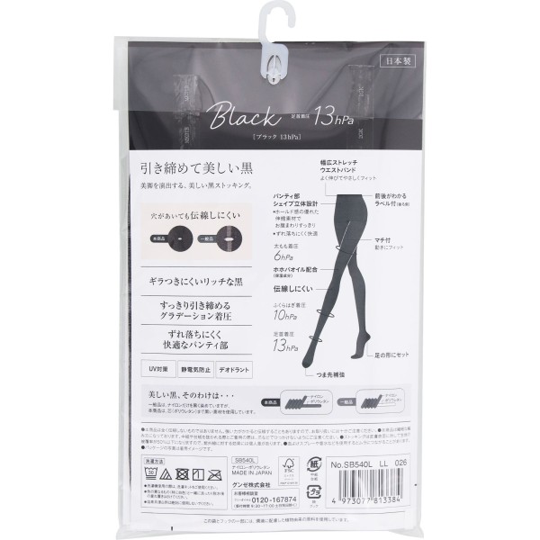 引き締めて深く美しい黒(足首13hpa)、伝線しにくいサブリナブラックストッキング