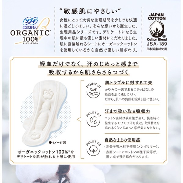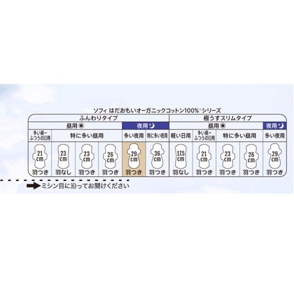 소피 피부 마음 오가닉코튼 많은 밤용 29cm 10매 유니참 > 하다오모이 오가닉