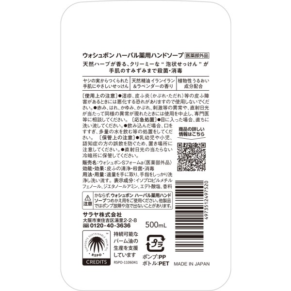 WASH BON 본체 대용량 500ml 사라야 > 기타 거품 타입