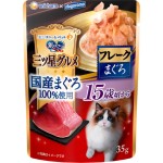国産天然まぐろ100%使用。まぐとの身がたっぷりのやわらかで贅沢な美味しさ。国産天然まぐろ100%のフレークを贅沢に使用し、ささみを加え、ホタテ風味のゼリーでやわらかく仕上げた至福の逸品。15歳頃からの愛猫の健康維持を考えて、ビタミンE・Bを調整。腎臓の健康維持に配慮して、カリウムを調整。お腹の健康維持に配慮して、オリゴ糖を配合。