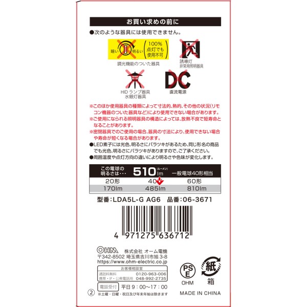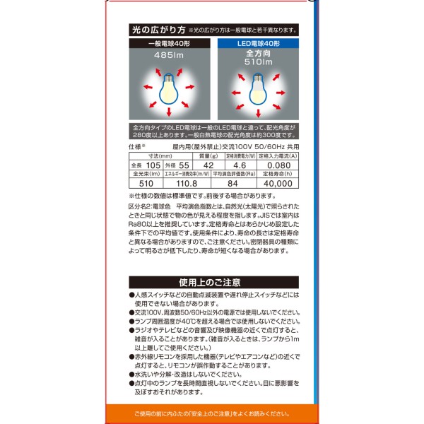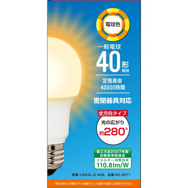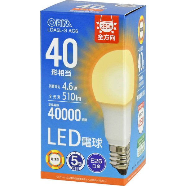 OHM LED 전구 전방향 40W형 전구색 옴전기 > LED 전구