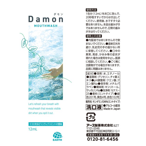 다몬 릴렉스민트 구강청결제 개별포장 휴대용 12ml×5개입 어스제약 > 구취 예방
