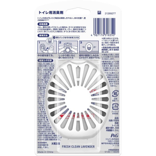 壁と床まで消臭+抗菌^。約8週間続く。*1トイレの床は汚いけど毎回は掃除しきれない。床の抗菌^、壁の防臭まで。*2フレッシュ・クリーン・ラベンダーの香り^一般的なビニールクッションフロアやトイレのマットを抗菌します。特定の菌・条件下で試験。全ての菌に同様の効果が得られるものではありません。 *1 使用状況による。 *2 タイル等のニオイが染み込まない素材には効果がありません。掃除を代替するわけではありません。