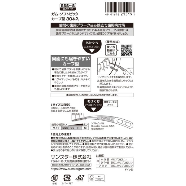 검·소프트픽 커브형 사이즈 SSS-S 30개입 썬스타 > 치간 브러시