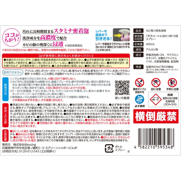클린플래닛 욕실 곰팡이 통째로 세정 울트라 휩 스프레이 Professional 400ml blessing > 곰팡이 제거·곰팡이 방지