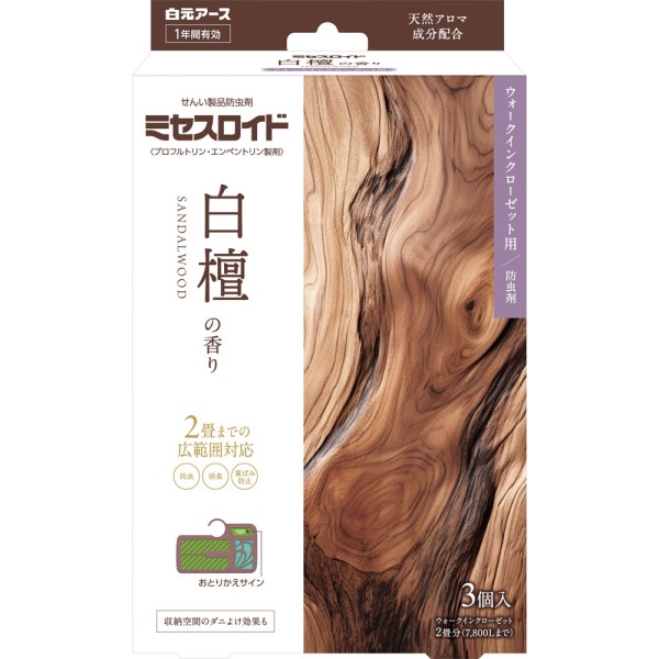 미세스로이드 WI 옷장용 1년 방충 백단향 3개 시로모토아스 > 향기 1년용