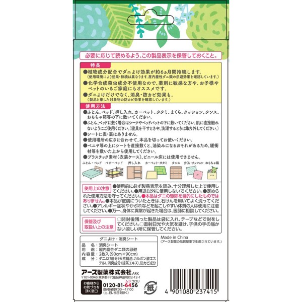 아스 진드기 방지 시트 2매 아스제약 > 기피·방제