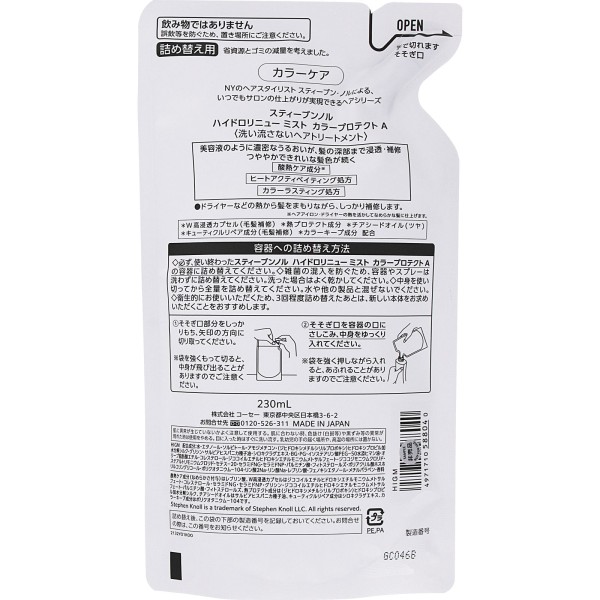 스티브 노르 하이드로 리뉴 미스트 컬러 프로텍트 A (리필용) 230mL 코세 > 스티븐 놀