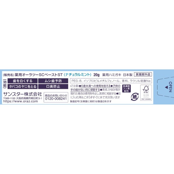 오라투미 스테인 클리어 페이스트 내추럴 민트 20g 썬스타 > 미백