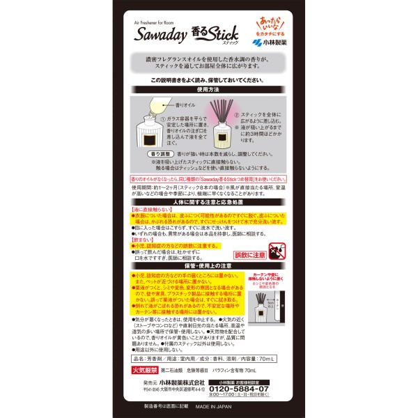 Sawaday 향기 Stick 파르팡 누아르 70ml 고바야시제약 > 스틱