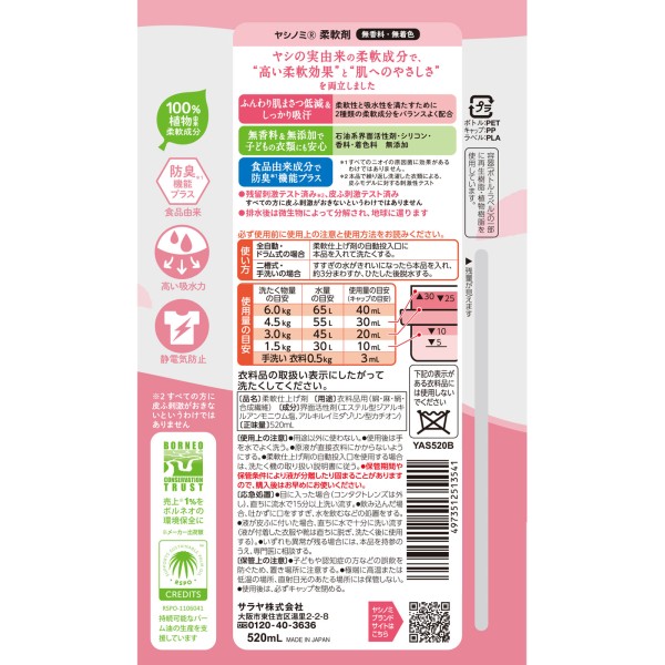 야시노미 유연제 520ml 사라야 > 액체 세제