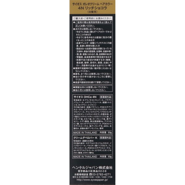 사이오스 올레오 크림 헤어 컬러 4N 리치 쇼콜라 50g+50g 헨켈재팬 > 백발용 크림