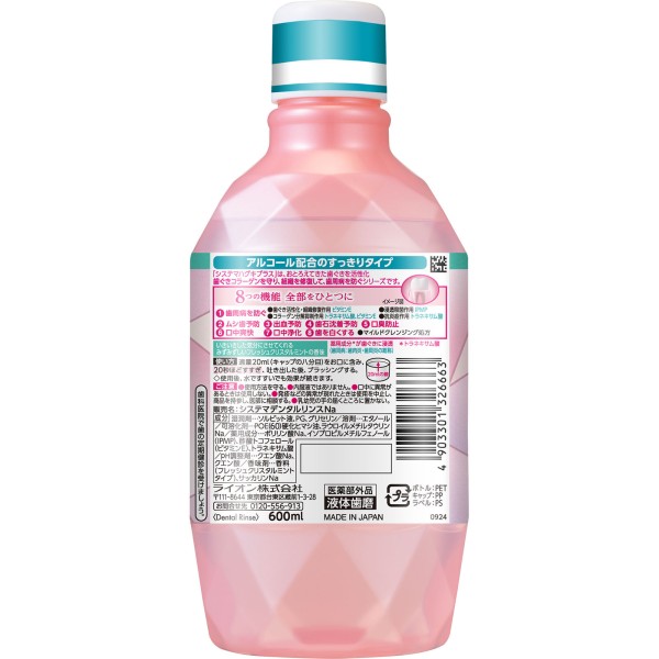 시스테마 하구키 플러스 프리미엄 덴탈 린스 프레쉬 크리스탈 민트 구강세정제 600ml 라이온 > 치주병 예방