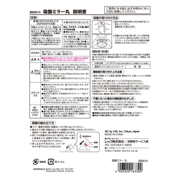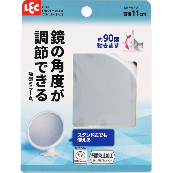 上下・左右に鏡の角度を約90度で調節できる吸盤取り付けタイプのミラーです。