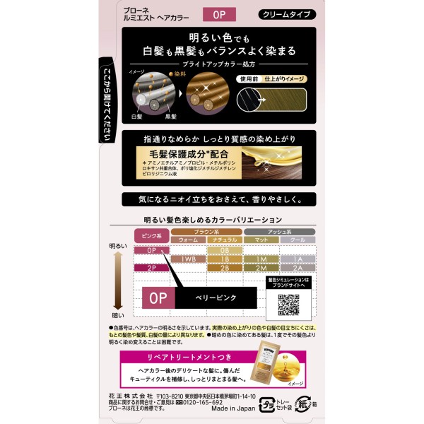브로네 뤼미에스트 헤어 컬러 0P 베리 핑크 108g 카오 > 백발용 크림