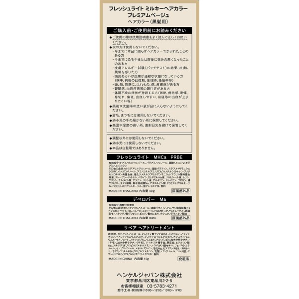 프레쉬라이트 밀키 헤어컬러 프리미엄베이지 40g+80ml+15g 헨켈재팬 > 흑발용 헤어 컬러