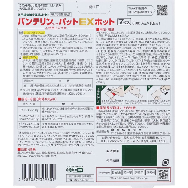 반테린코와 패드EX 핫 7매 코와 > 플라스타 (냉감)